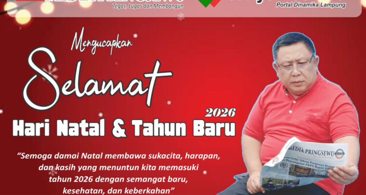 Pimpinan Umum, Redaksi, Wartawan dan Staf SKU Media Pringsewu dan Cahyamedia.co.id Mengucapkan Selamat Natal dan Tahun Baru 2026 Headline, Lampung, Nasional|21 Desember 202521 Desember 2025oleh Redaksi Pimpinan Umum, Redaksi, Wartawan dan Staf SKU Media Pringsewu dan Cahyamedia.co.id Mengucapkan
