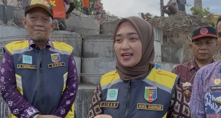 CAHYAMEDIA (TANGGAMUS) — Wakil Gubernur Lampung Jihan Nurlela meninjau langsung penanganan longsor
