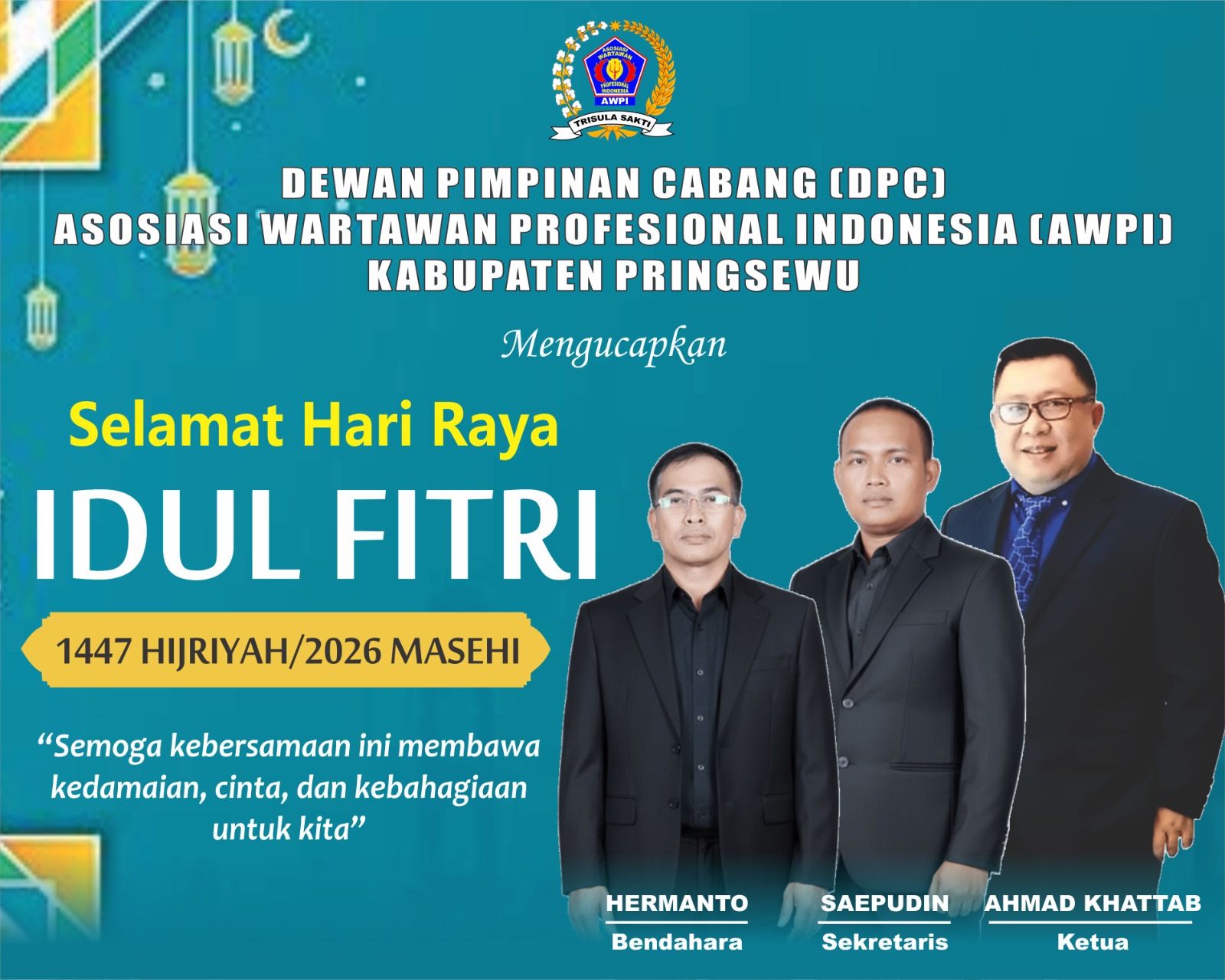 DPC Asosiasi Wartawan Profesional Indonesia (AWPI) Kabupaten Pringsewu Mengucapkan Hari Raya Idul Fitri 1447 H / 2026 M