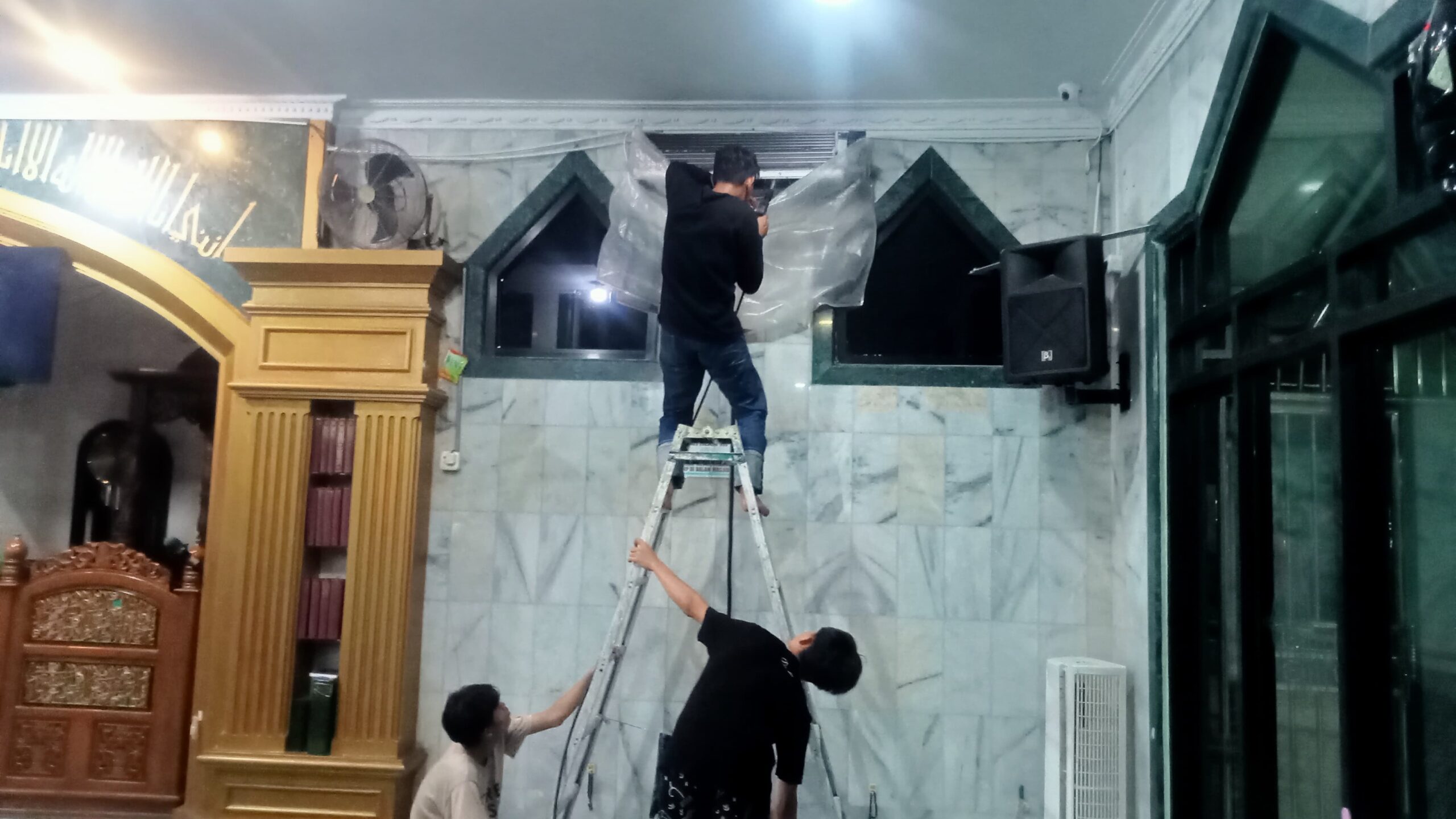 Team yang diketuai Gusti beserta rekan-rekannya melakukan pembersihan AC masjid menyeluruh, sehingga akan membuat nyaman jemaah Masjid Mu’awanah saat melakukan Ibadah di masjid tersebut.
