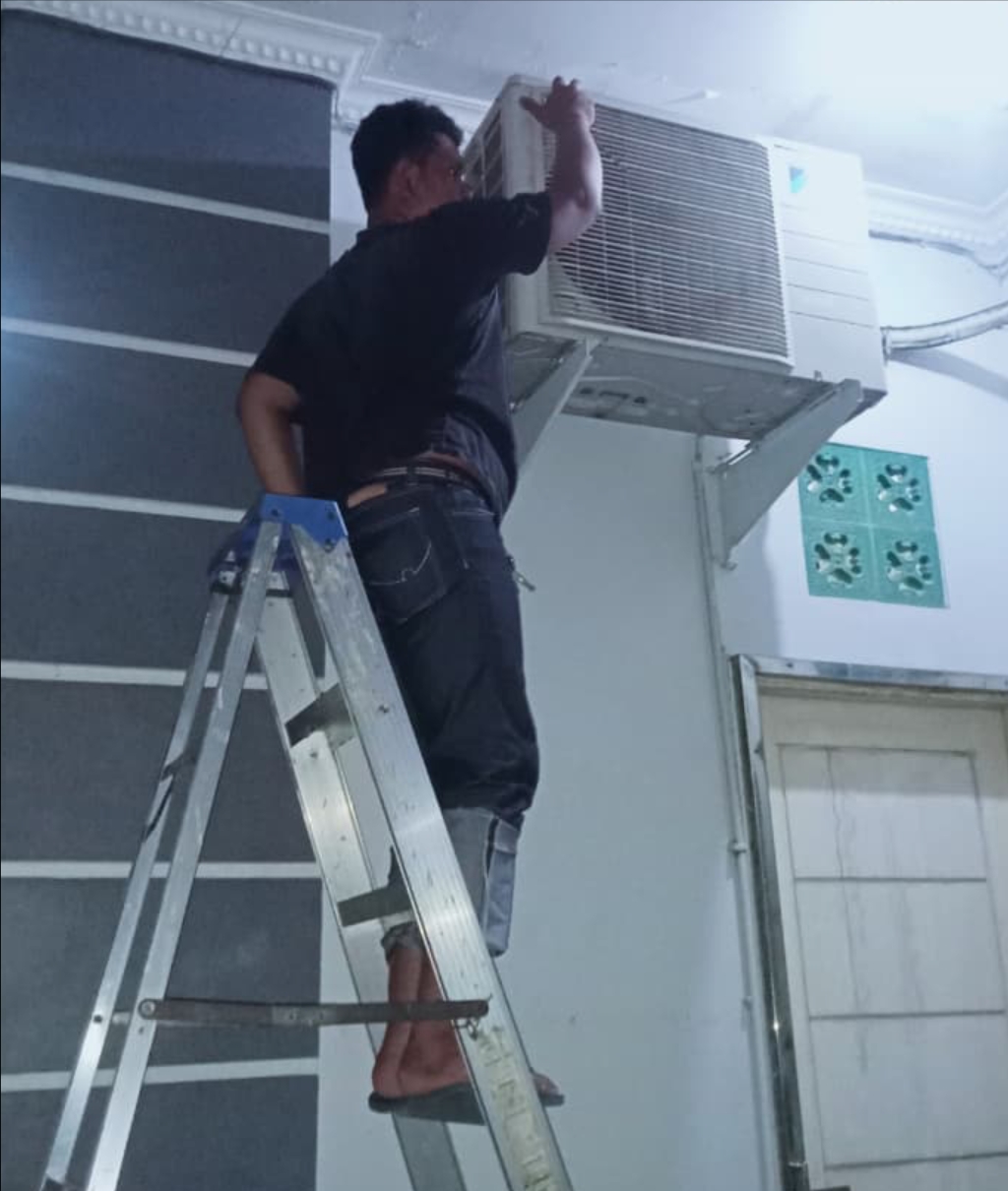 Team yang diketuai Gusti beserta rekan-rekannya melakukan pembersihan AC masjid menyeluruh dari Minggu sore hingga tengah malam. Tujuannya untuk membuat nyaman jemaah Masjid Mu’awanah saat melakukan Ibadah di masjid tersebut.