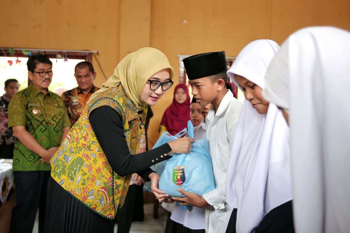 CAHYAMEDIA (LAMPURA) — Wakil Gubernur Lampung, Jihan Nurlela, yang juga menjabat sebagai Ketua Lembaga Koordinasi Kesejahteraan Sosial (LKKS) Provinsi Lampung, menyerahkan bantuan paket sembako kepada Lembaga Kesejahteraan Sosial Anak (LKSA) Nurul Mutaqqin yang berada di Pondok Pesantren Tahfidzul Quran Nurul Mutaqqin, Kotabumi, Lampung Utara (Lampura), Jumat (19/9/2025).