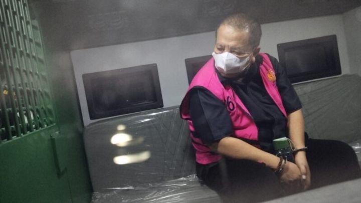 Dia datang naik mobil mewah Alpard dan meninggalkan kejati Lampung naik mobil tahanan baru Kejati Lampung: Maung ke Lapas Wayhui, Lamsel.