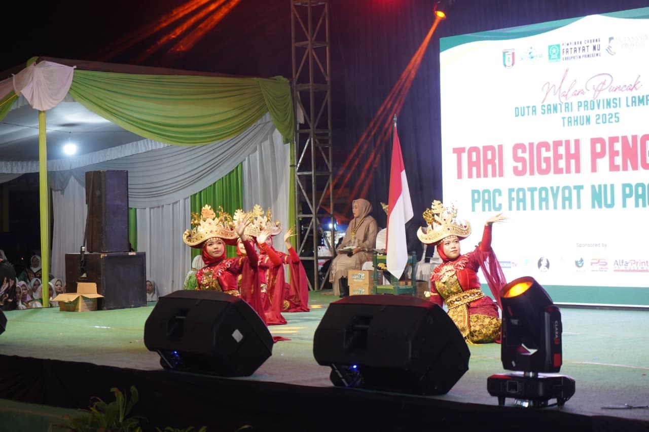CAHYAMEDIA (PRINGSEWU) — Malam Puncak Pemilihan Duta Santri tingkat Provinsi Lampung tahun 2025 berlangsung meriah. Tahun ini, PC Fatayat NU Kabupaten Pringsewu menjadi tuan rumah dalam ajang pemilihan tersebut yang digelar di Kabupaten Pringsewu, Sabtu (18/10/2025) malam, di Pendopo Pringsewu.‎