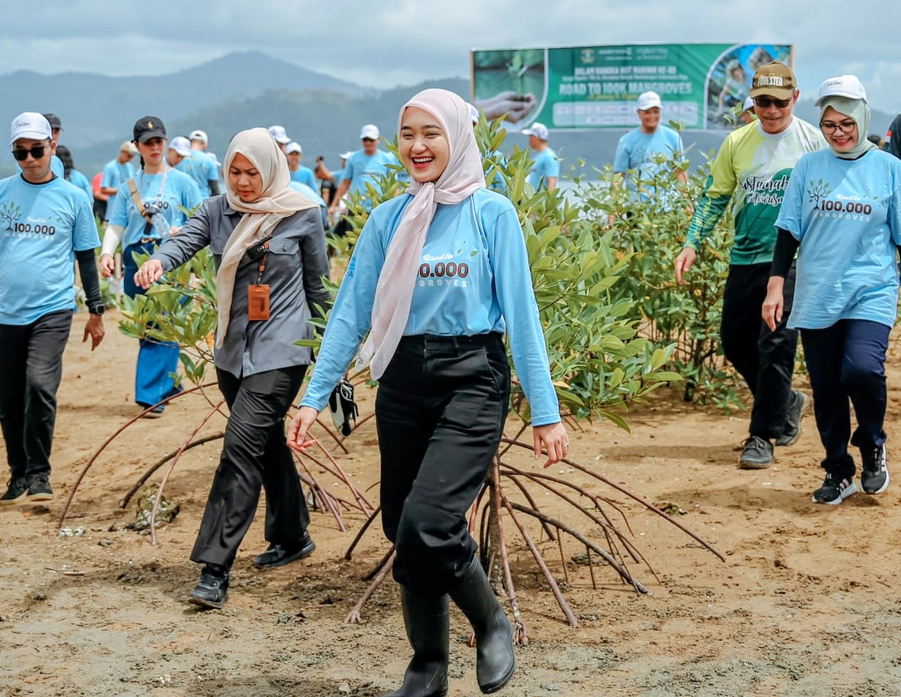 Sebanyak 25.000 bibit mangrove ditanam pada kegiatan tersebut sebagai upaya memperkuat sabuk hijau pesisir dan mengurangi risiko abrasi maupun dampak perubahan iklim.