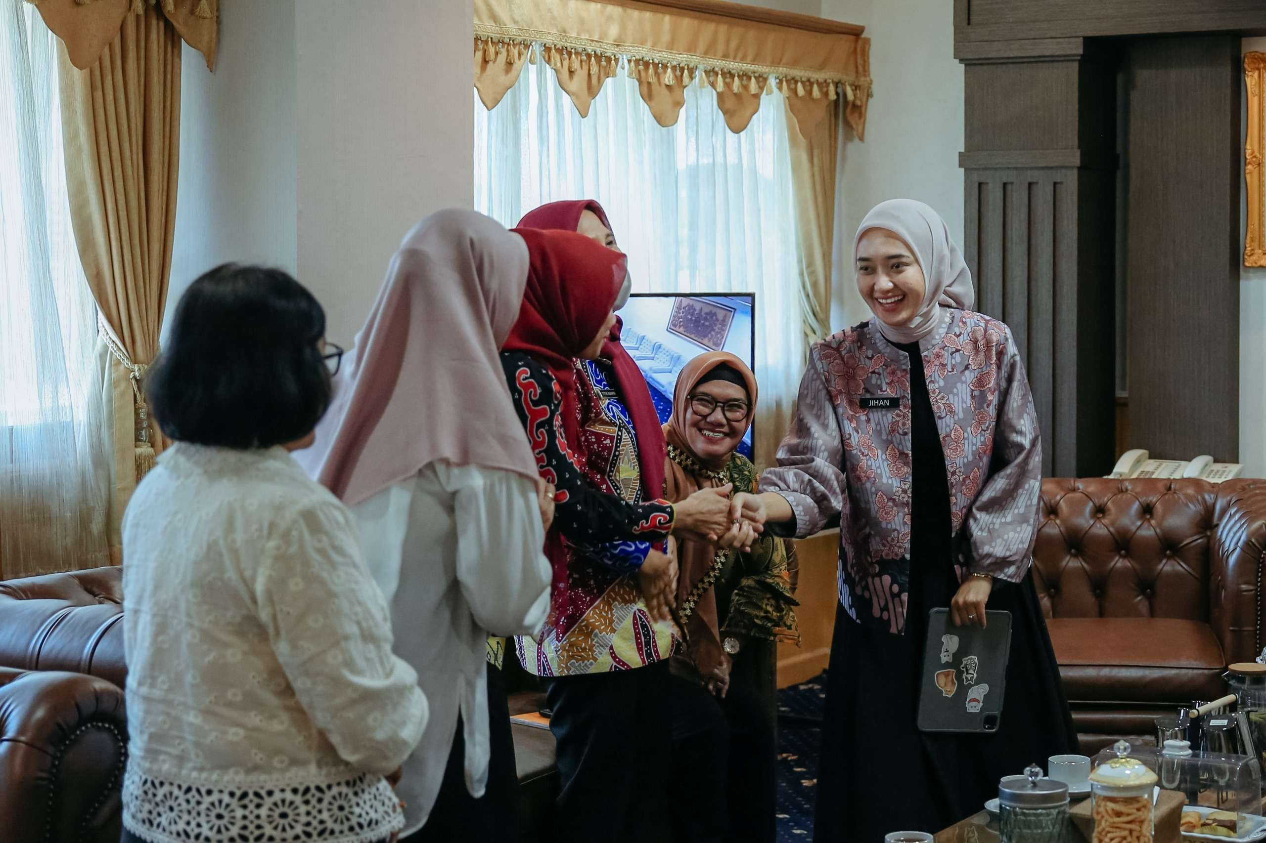 CAHYAMEDIA (BANDARLAMPUNG) — Wakil Gubernur Lampung Jihan Nurlela menerima kunjungan pengurus Badan Kerja Sama Organisasi Wanita (BKOW) Provinsi Lampung di Ruang Kerja Wakil Gubernur, Kantor Gubernur Lampung, Kamis (4/12/2025).